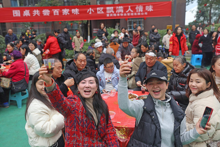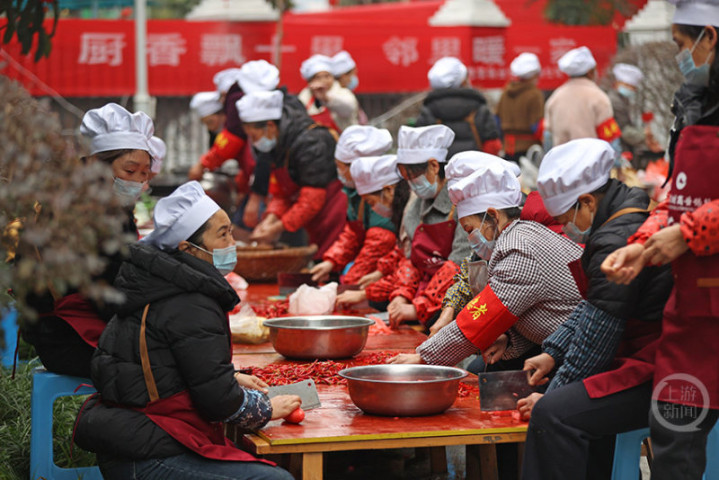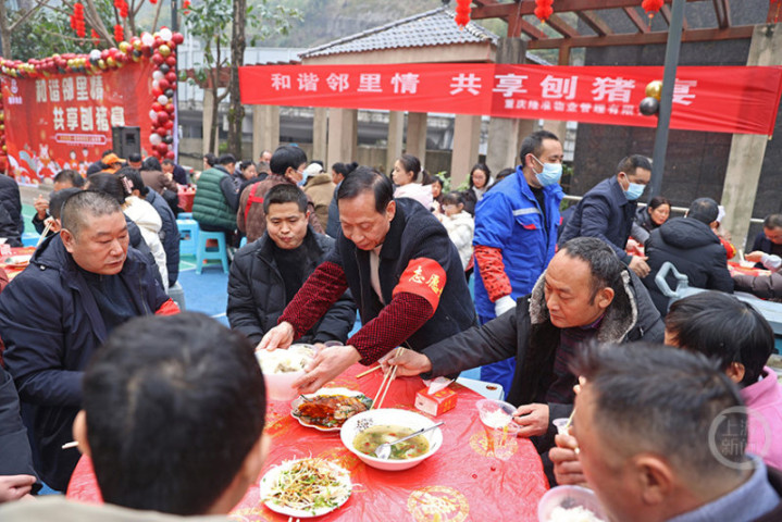 1月17日,重庆市彭水苗族土家族自治县绍庆街道滨江社区某小区,392户超千名居民齐聚,举办“和谐邻里情共享刨猪宴”的活动,传承年俗文化,拉近邻里关系,营造温馨氛围。